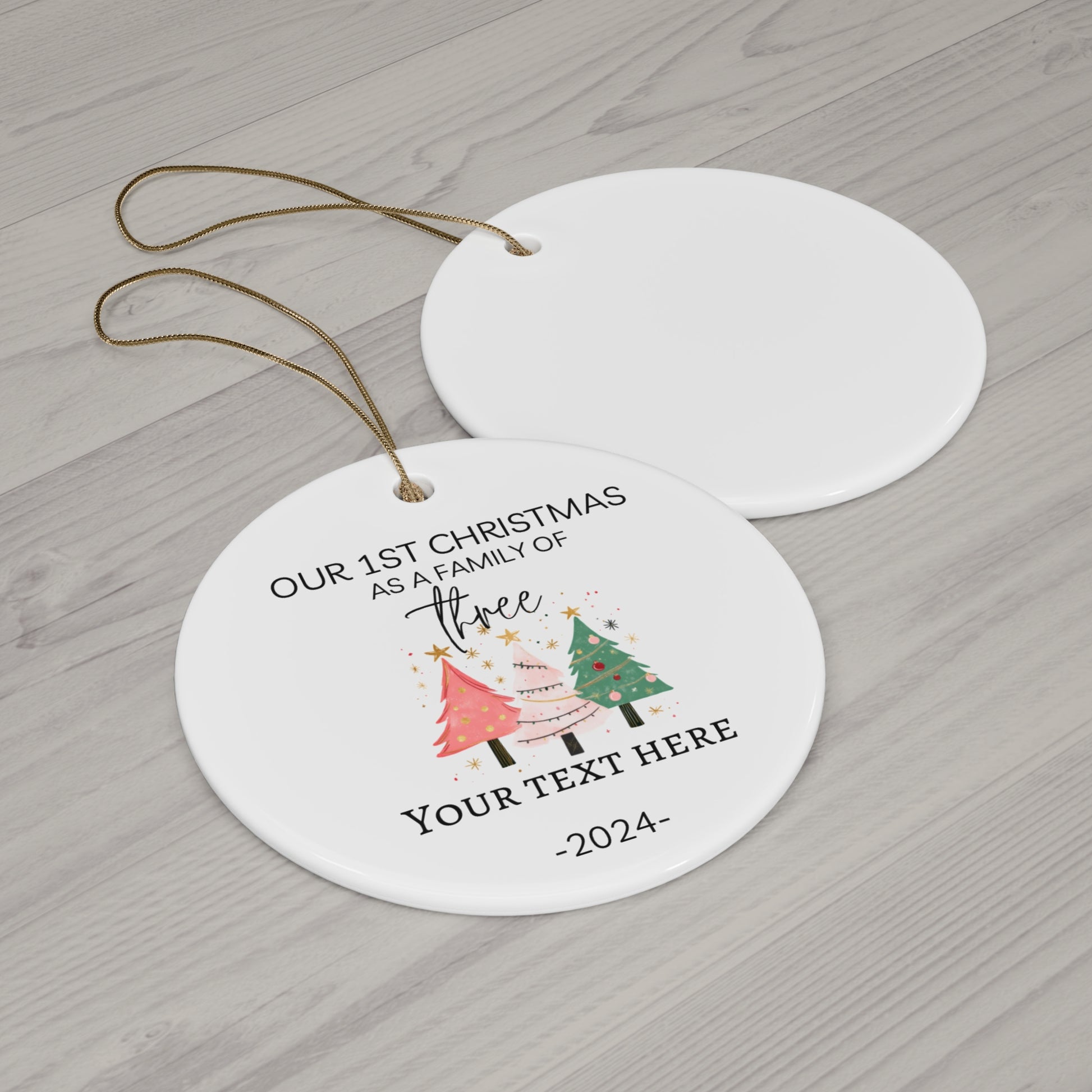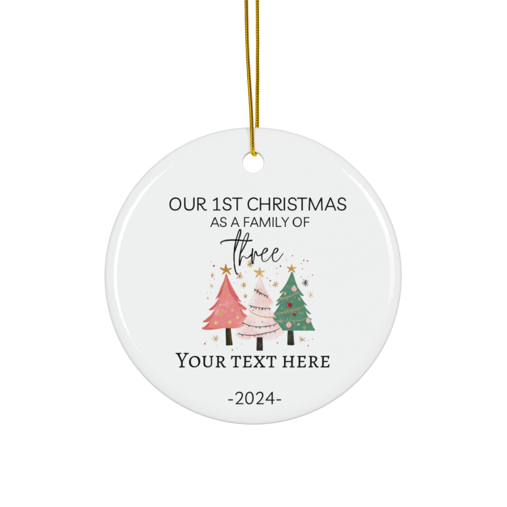 1st Christmas Family of 3 custom Personalized Ceramic Ornament