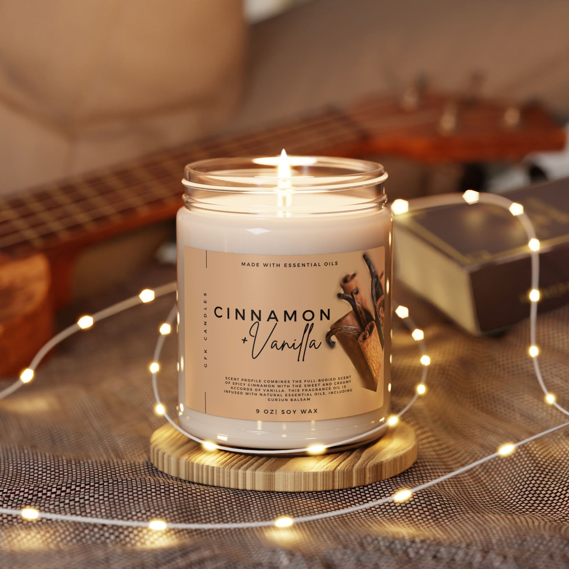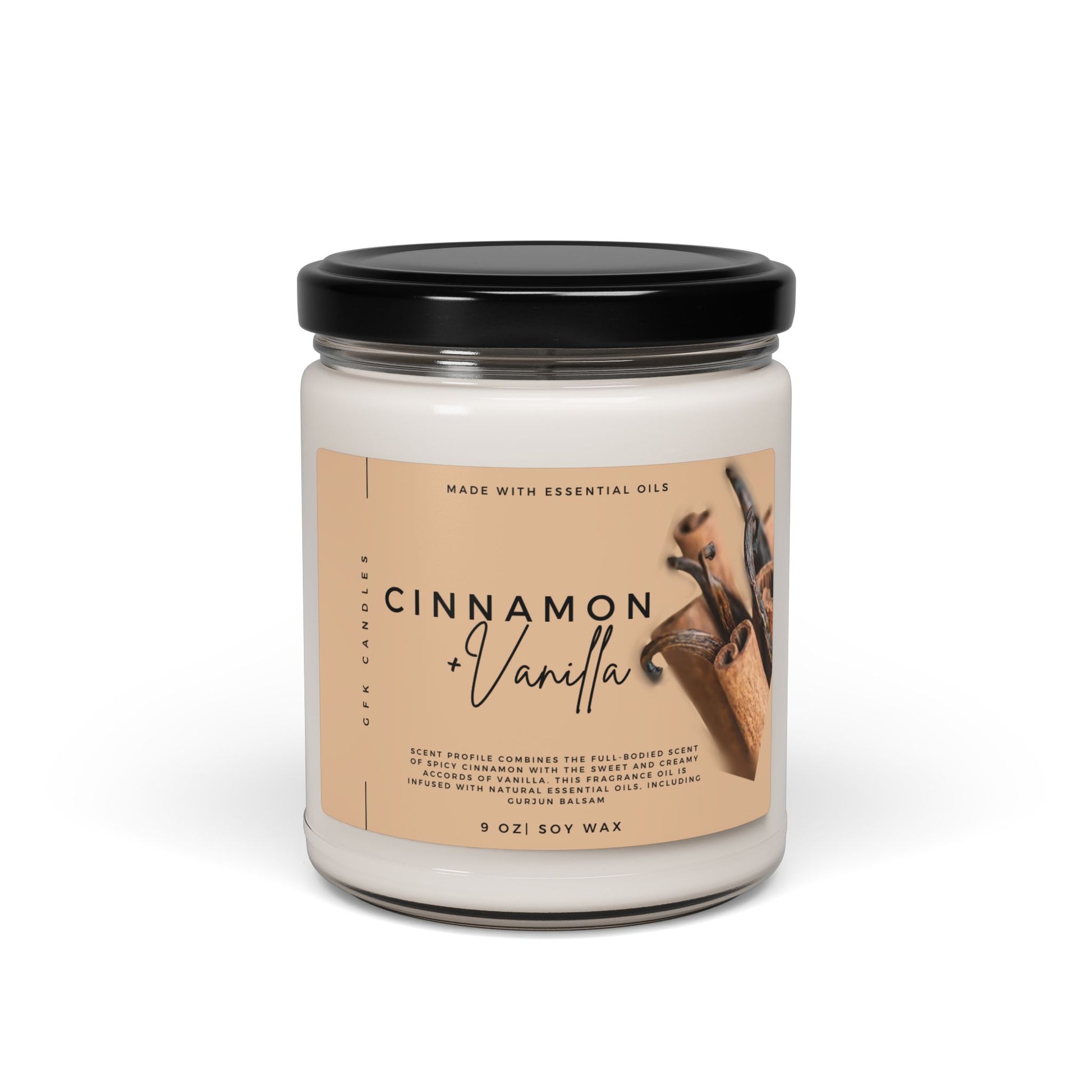 Cinnamon Vanilla Scented Soy Candle, 9oz