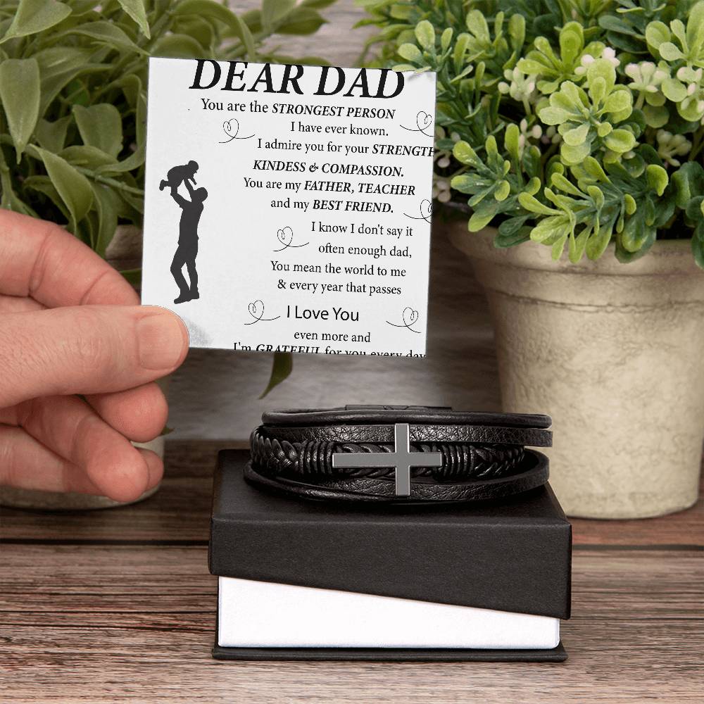 To My Dad | Cross and Leather Bracelet